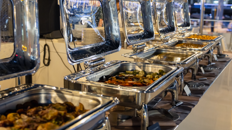 Dinner (buffet style), featuring a grill station with an on-board chef.