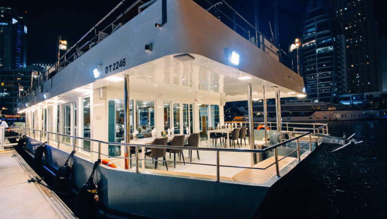 Dinner cruise on a premium catamaran in Dubai Marina (9:00 PM – 10:45 PM)